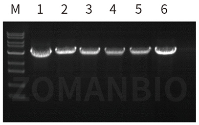 M:DL15000 plus DNA marker 1:A公司 2:B公司 3:C公司 4:D公司 5:E公司 6:F5 Mix | M:DL15000 plus DNA marker 1:500ng 2:50ng 3:5ng 4:0.5ng 5:50pg 6:5pg |