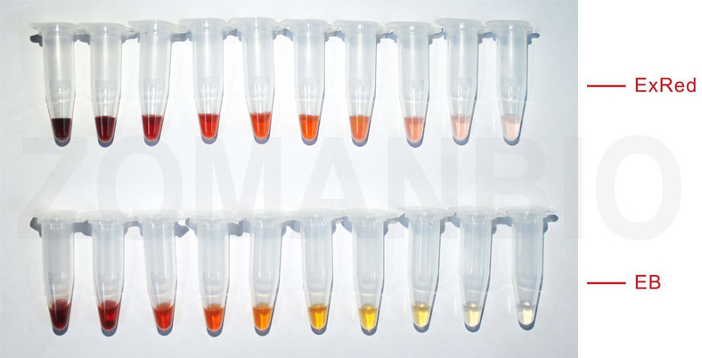ExRed和EB的稀釋效果對(duì)比圖(以2×稀釋效果為例)如下: