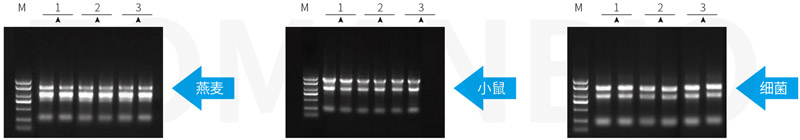 操作可視化:溶液呈粉紅色,便于分離水相和有機相。 以上參考圖分別取50mg燕麥葉片,20mg小鼠肝臟和1ml細菌DH5α菌液各數(shù)份,組織進行液氮研磨處理,菌液離心收集細胞后,分別加入1ml Zomanbio RNApure 和 T、I公司相應(yīng)產(chǎn)品,按各自說明書進行RNA提取。洗脫體積分別為80μl、100μl、60μl。RNA電泳上樣量分別為5μl,1%瓊脂糖凝膠電泳。