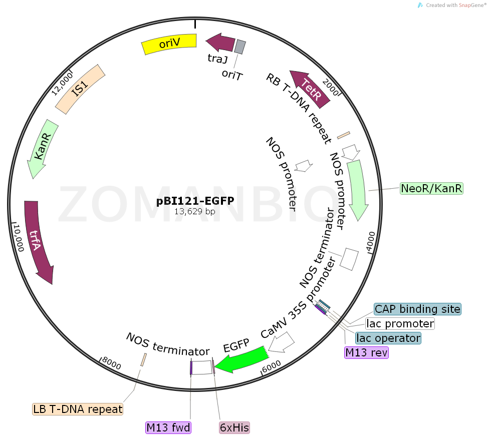 質(zhì)粒序列請下載:ZK852pBI121-EGFP植物表達質(zhì)粒.txt