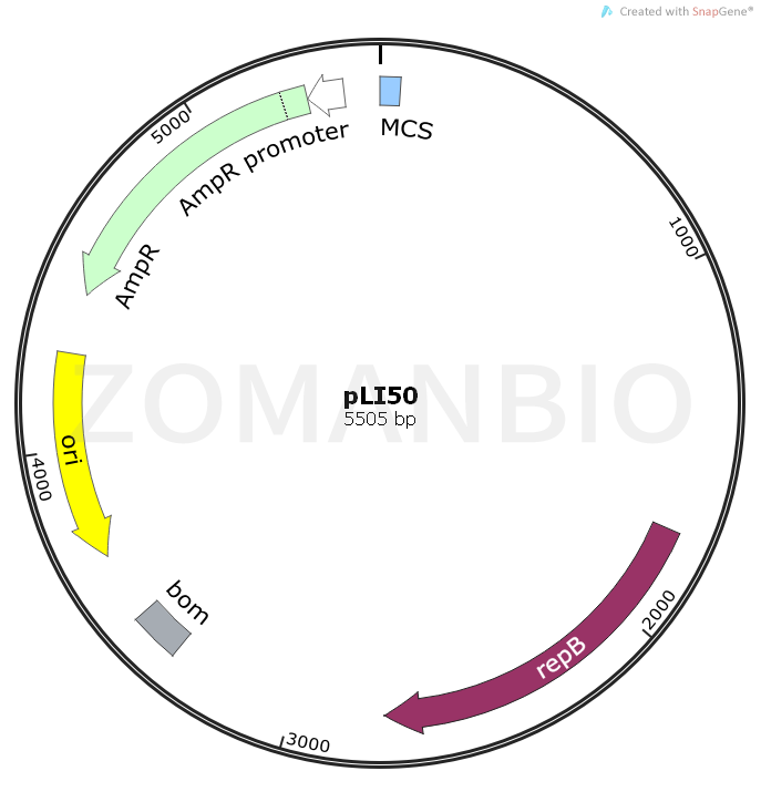 pLI50質(zhì)粒是一個(gè)金黃色葡萄球菌單拷貝整合載體,在大腸桿菌里氨芐抗性,在金黃色葡萄球菌里是氯霉素抗性。參考文獻(xiàn):Construction of single-copy integration vectors for Staphylococcus aureus.