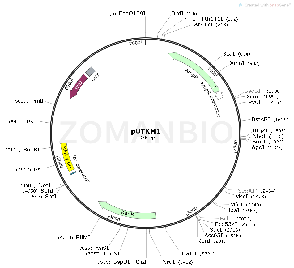 pUTKM1是一個大腸桿菌隨機轉(zhuǎn)座突變質(zhì)粒。