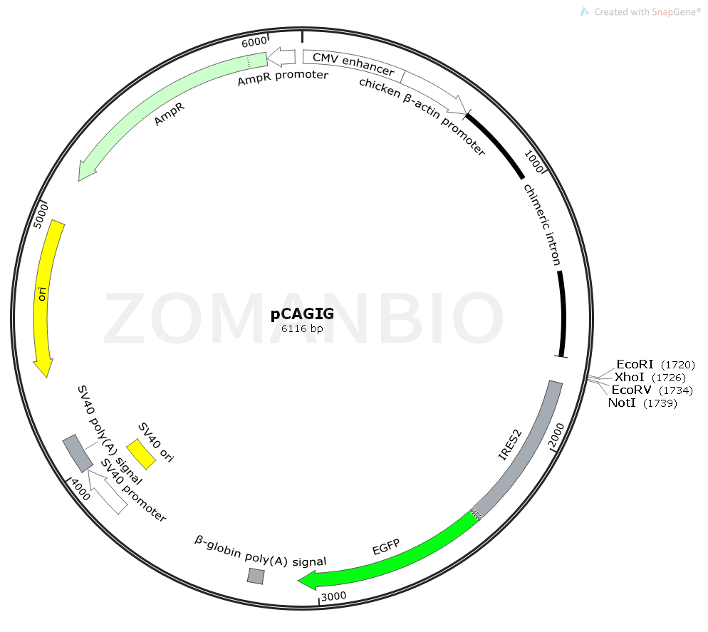 pCAGIG是一個哺乳細胞pCAG系列過表達質(zhì)粒。