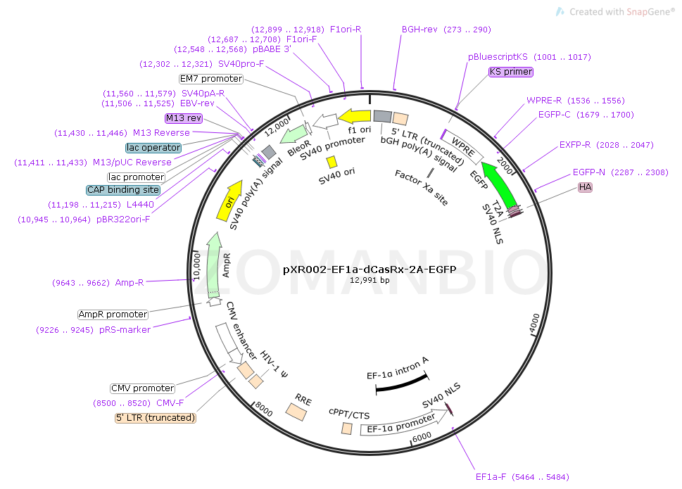 pXR002-EF1a-dCasRx-2A-EGFP哺乳編輯質(zhì)粒